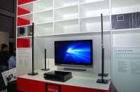 さらにBDプレーヤーを核とした一体型シアターパッケージ「BDV-IT1000」も目を引く。センターユニットはBDプレーヤーを内蔵しており、5本のサテライトスピーカーは16mmの超スリムなデザイン。ロスレス対応のトランスミッタ/レシーバーによるワイヤレス音声伝送も実現しており、リアスピーカーがレシーバー経由でワイヤレス設置できる。発売時期は来年1月を予定しており、価格は2,000ユーロの見込み。